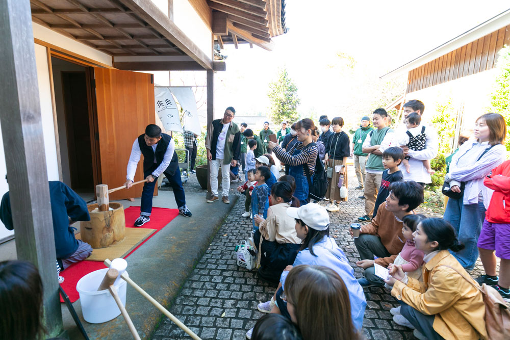 毎年大人気の餅つき。今年も源七さんに来ていただき、みんなでよいしょ!