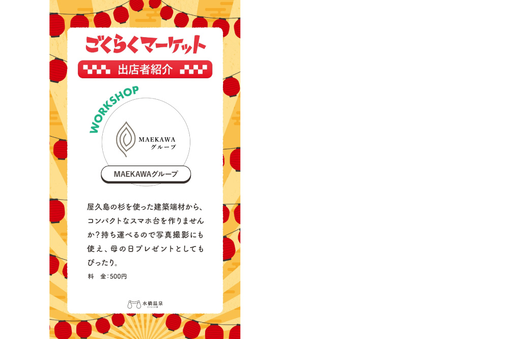 水橋温泉 ごくらくの湯にて、MAEKAWAグループと美味しい飲食、楽しいワークショップのイベント開催です!