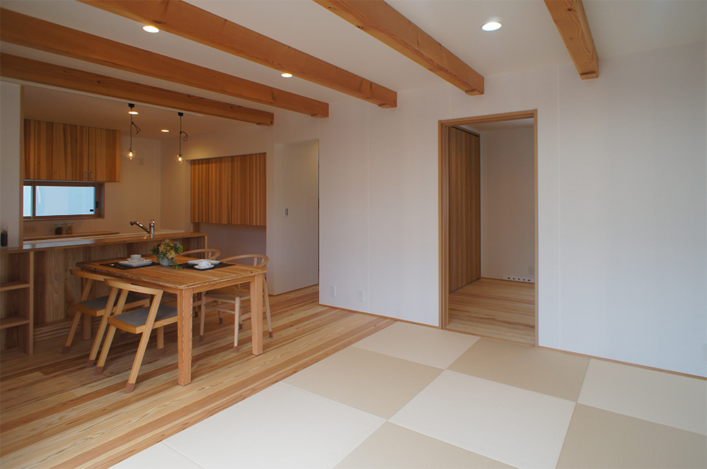 一生住む家だから、老後をイメージして間取りを考えました。寝室は1階に、そしてリビングは畳にしました。畳のうえで子どもを真ん中にして家族3人でお昼寝するときが幸せです。家を建ててよかったなぁと思います。この子にいい家を残しておけますから。自然素材の家だから大きくなる頃にはきっといい味が出ていると思います。