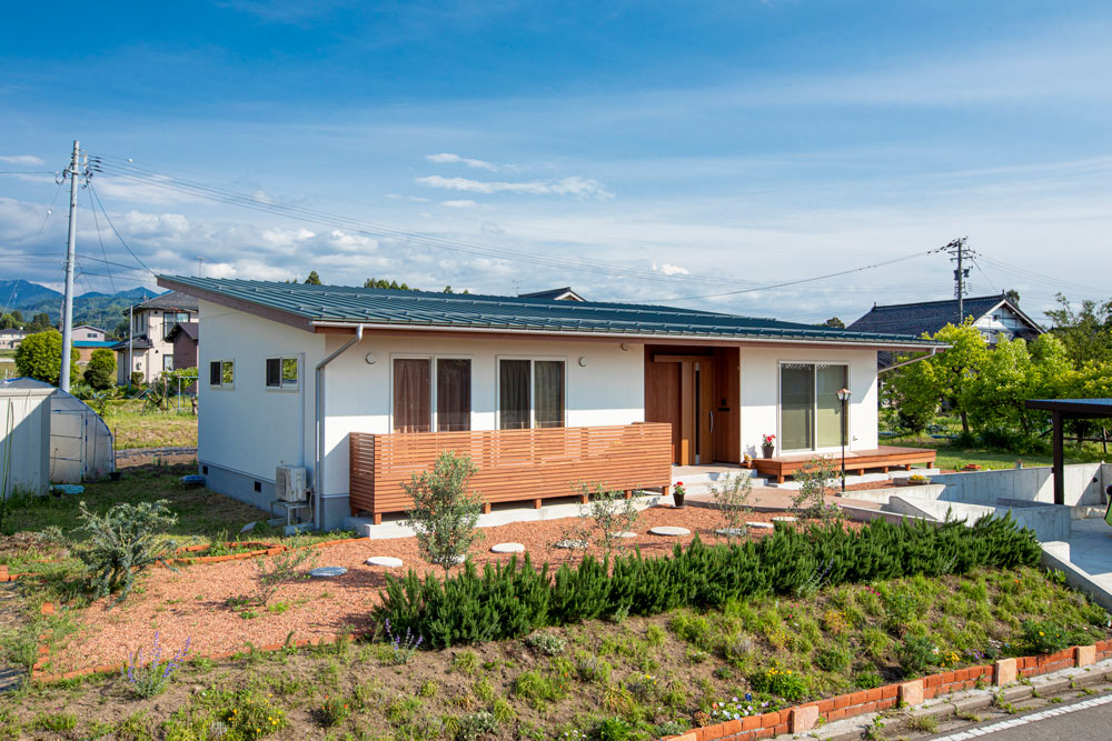 中新川郡上市町 暮らしを楽しむ平屋の家 #大開口窓 #畳コーナー トイレの壁の珪藻土はご家族自身で。 自分たちの住まいを自分たちで仕上げる。 家庭菜園でつくった野菜を日々食べる。 そんな「暮らし」を楽しむご家族の住まいです。 外観 内観 お家の仕様 敷地面積 381.13㎡ 延床面積 100.66㎡ 工法 プレウォール構造 WB工法 ご家族構成 ご夫婦+お子様1人 竣工年月 2017年10月
