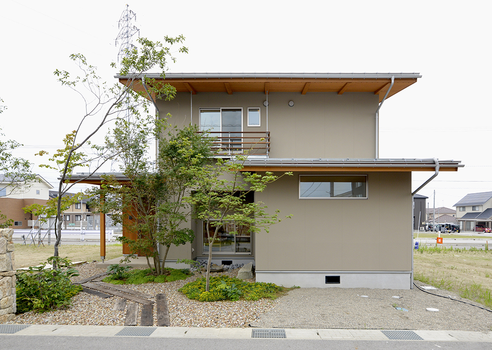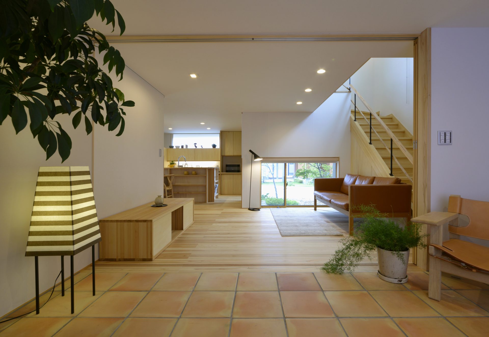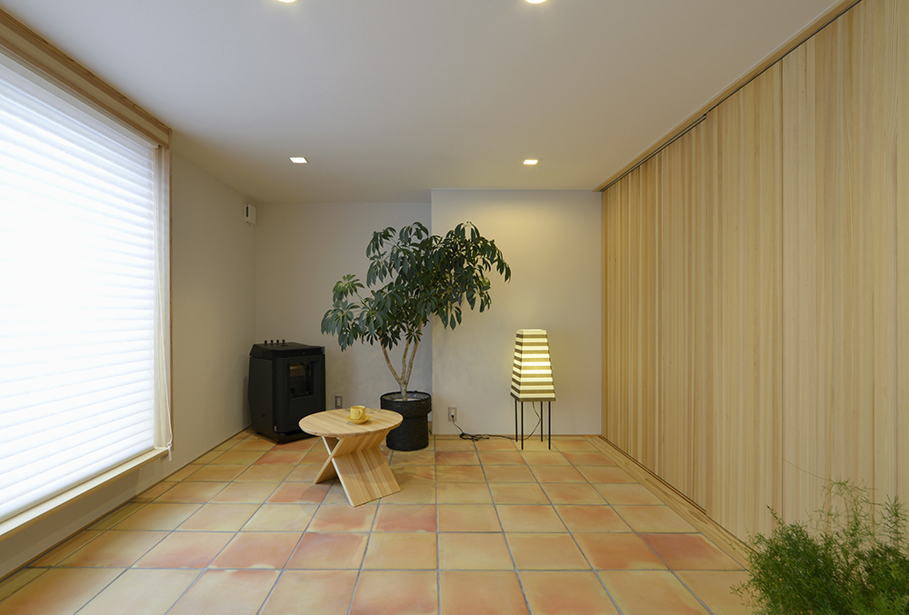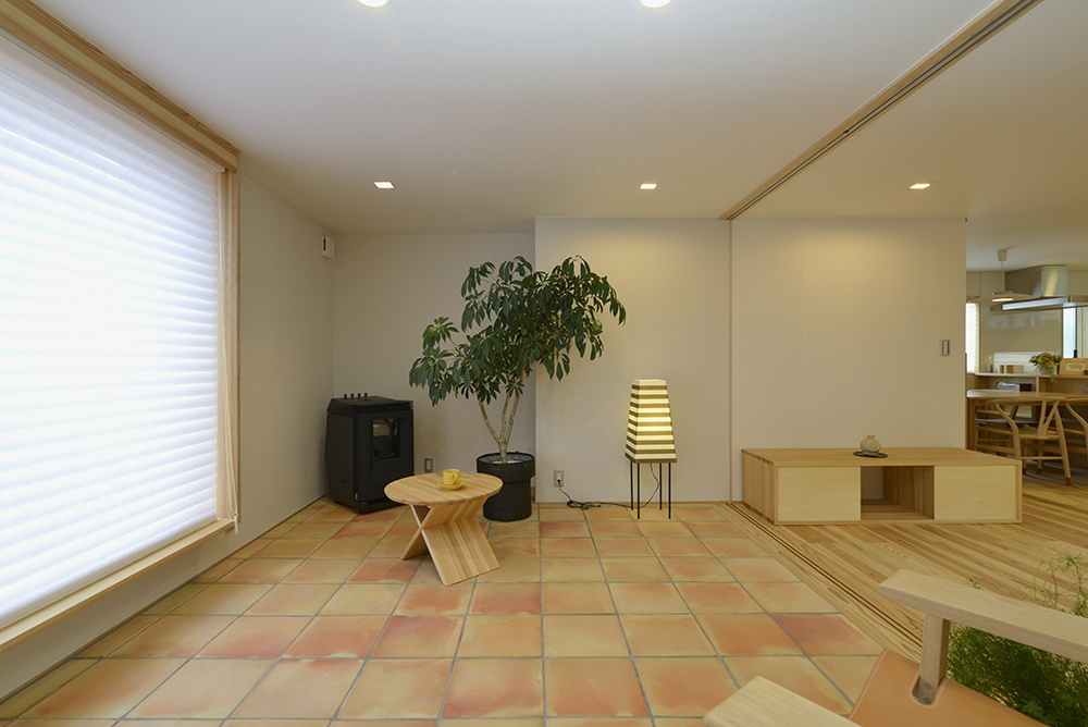 富山市 土間リビングの家 #大開口窓 #畳コーナー 「時を経て美しくなる木の家」 床は調湿効果にも優れた杉の無節、無垢材を採用し、一年を通してはだしで暮らせるように。壁に貼った和紙と相まって経年美化して上質な空間を造り出します。 「土間のあるリビング」はテラコッタタイルに床暖房。蓄熱したタイルで冬は足元からぽかぽか。夏はタイルがひんやりと気持ちいい。 それぞれの素材の持つ特徴を生かして、快適に暮らせる家です。 外観 内観 お家の仕様 敷地面積 183.60㎡ 延床面積 116.64㎡ 工法 プレウォール構造 WB工法 ご家族構成 ご夫婦 竣工年月 2015年4月