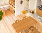 収納兼作業用カウンターをダイニング側に配置して、ぐるりと回遊できる使いやすい家事動線に。
