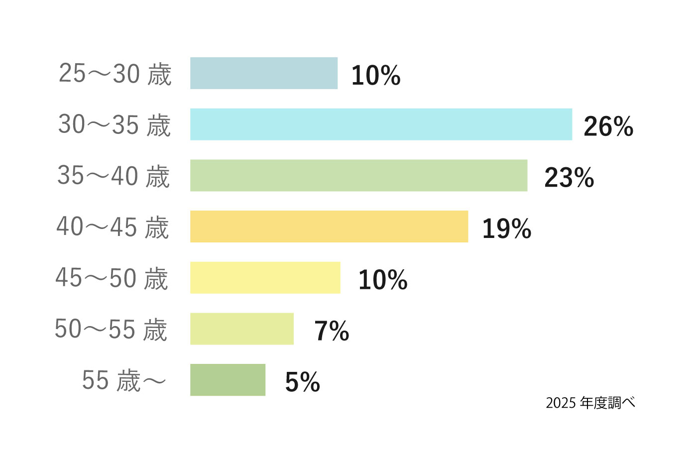 子育て世代にあたる30代のお客さまが全体の5割を占めますが、40代後半のお客さまも多くいらっしゃいます。質の高い家をじっくり考えて自分に合う家を探している方に選ばれています。